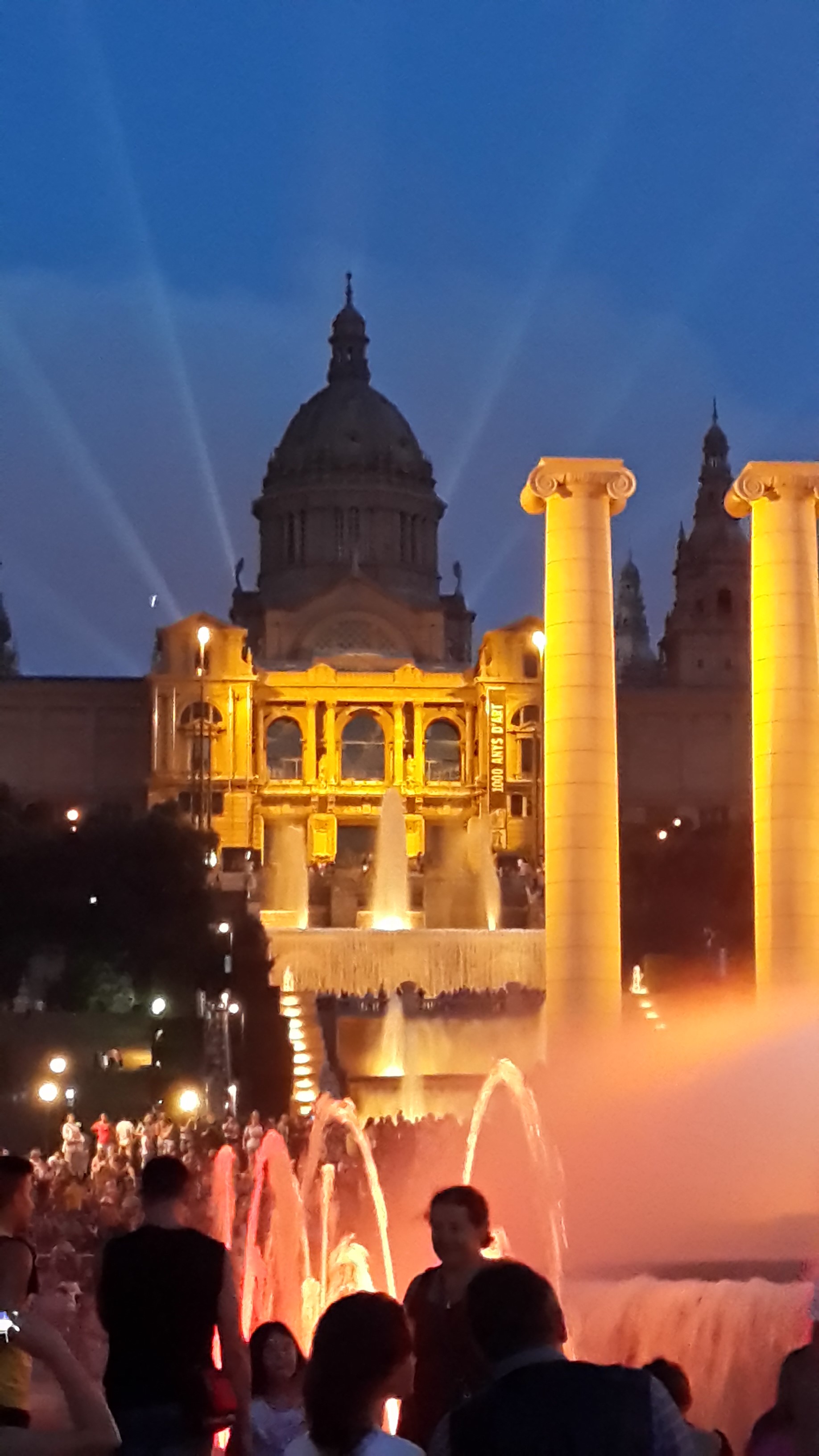 Plaça d’Espanya was packed with people taking advantage of the warm Catalan night and free entertainment. A large crowd gathered around Font Màgica and we jostled for position with the hundreds of others attempting to take selfies near the beautifully lit fountain. After taking in the synchronized light and water show, we wandered over to the stage where a concert was in progress.